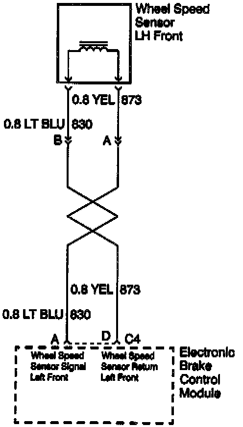 When inspecting a wheel speed sensor, inspect the sensor terminals and harness connector for corrosion. If evidence of corrosion exists, replace the wheel speed sensor. Refer to Wheel Speed Sensor, Service and Repair. Service and Repair