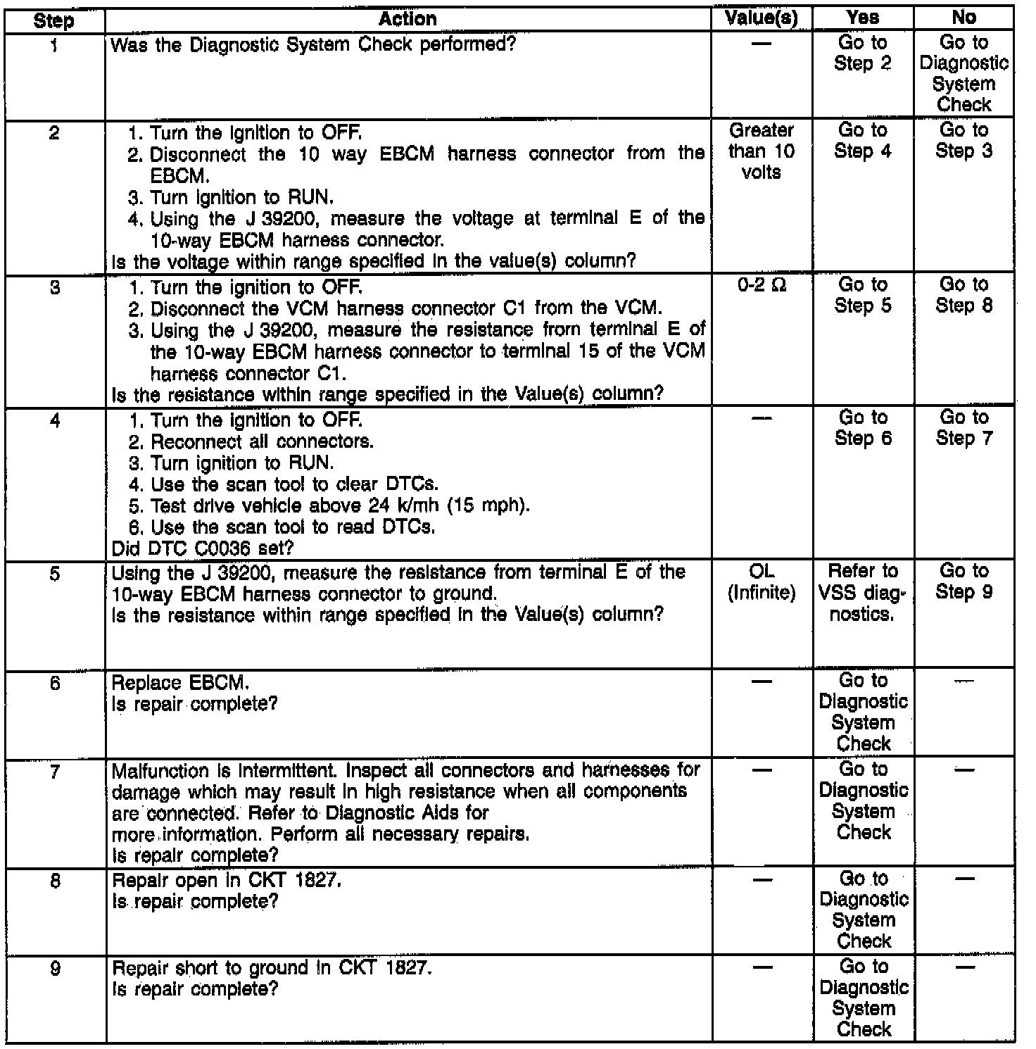 DTC C0036 Diagnostic Chart: