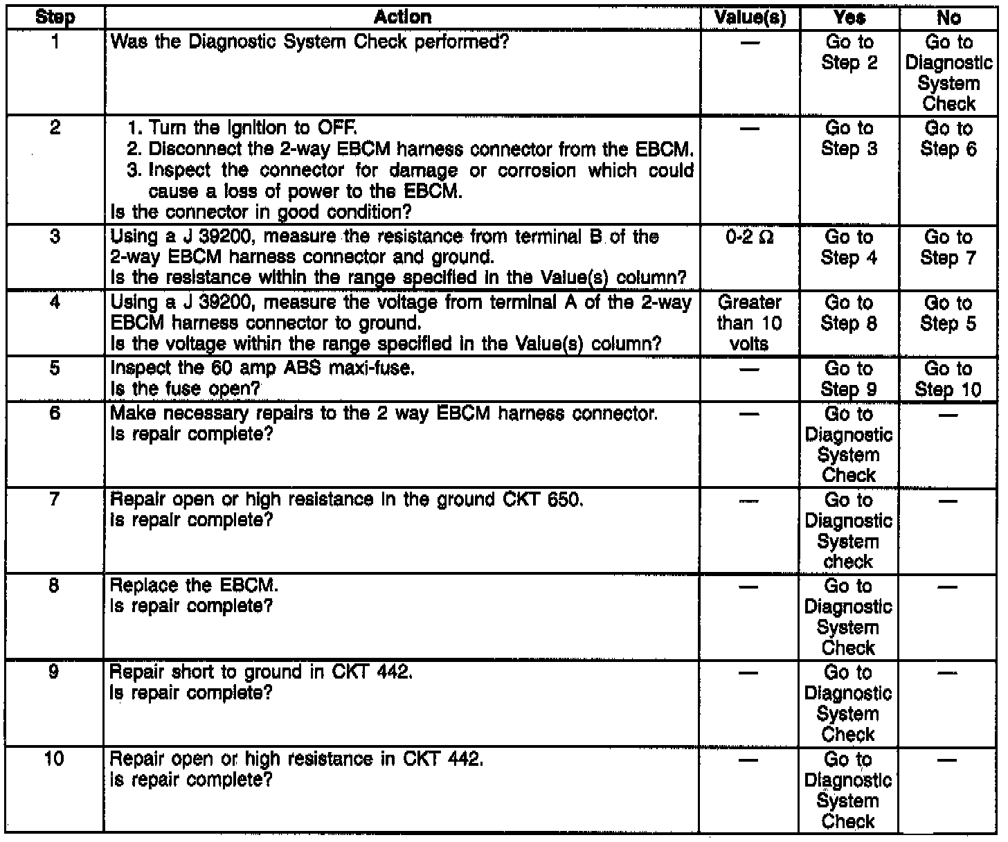 - Low voltage on EBCM solenoid driver circuit when expected to be high (solenoid not energized)
