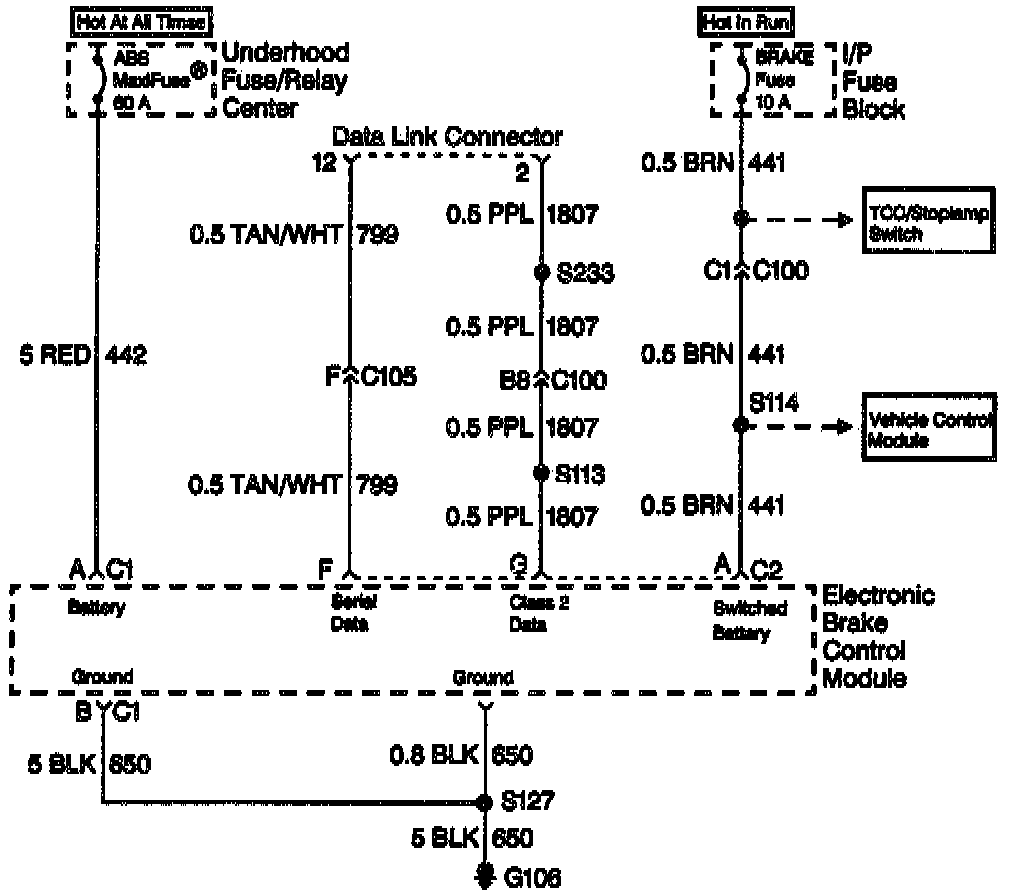 The relay supplies power to all eight solenoid coils (4 isolation solenoid coils and 4 dump solenoid coils) when Antilock Brake System (ABS) operation is required. The relay and the eight solenoid coils are located within the Electronic Brake Control Module (EBCM).