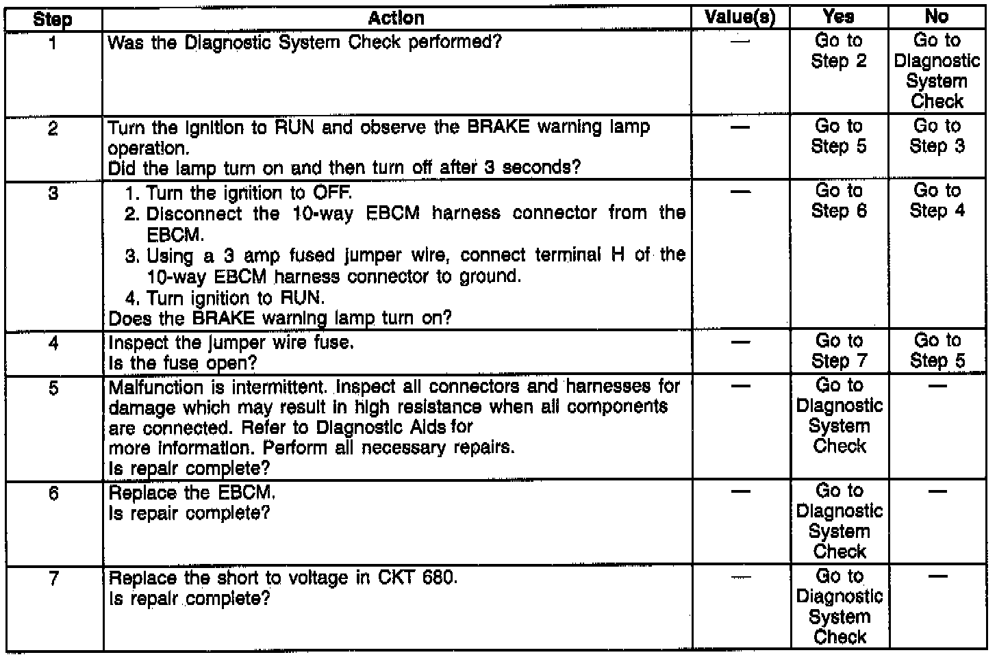 - Anything that keeps the BRAKE waning lamp circuit high when the lamp is supposed to be illuminated such as a short to voltage on circuit 680.
