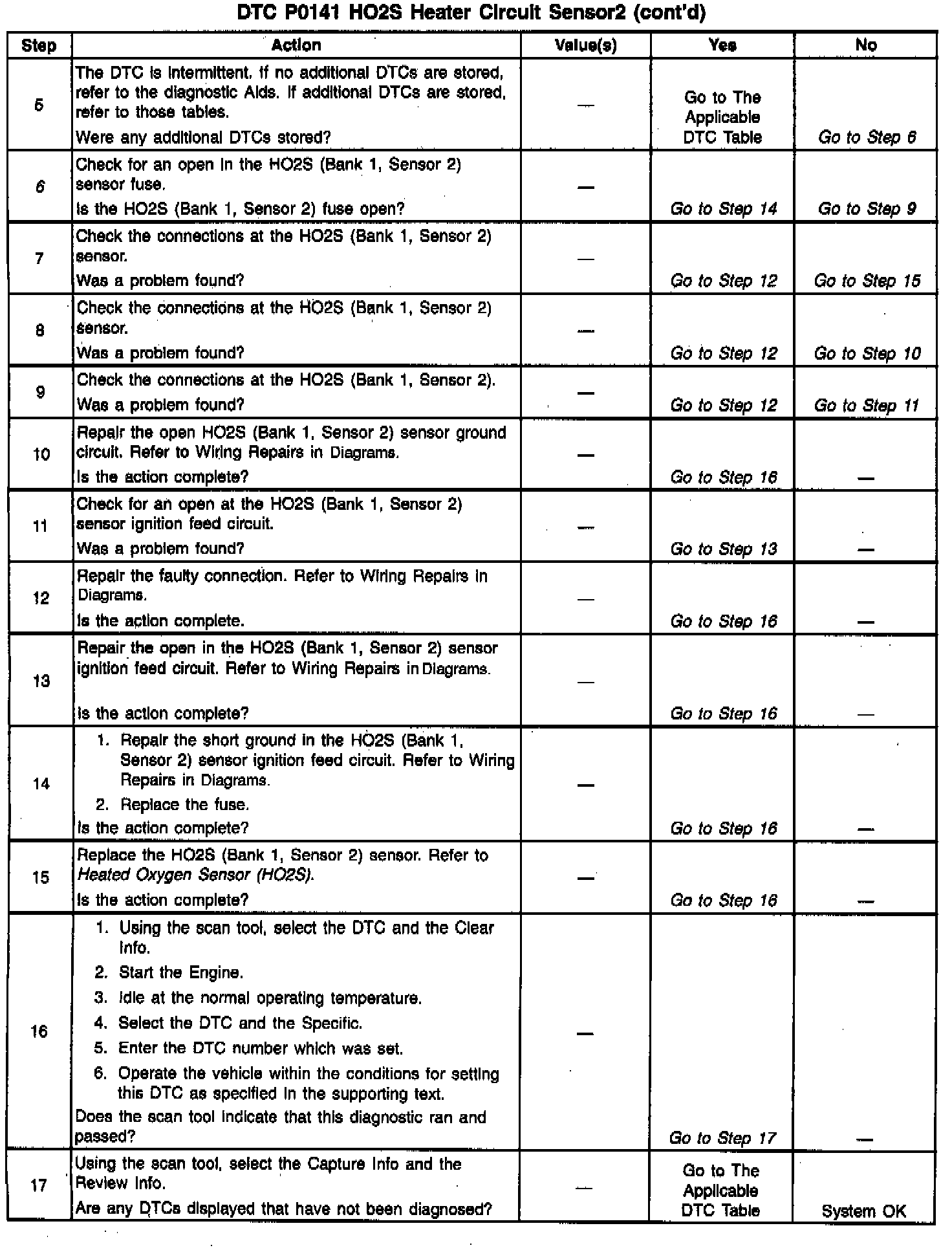 The HO2S heater provides for a faster sensor warm-up which allows the sensor to become an active in a shorter period of time and remain active during long extended idle. The DTC P0141 determines if the HO2S is functioning properly by checking the response time of the sensor. This DTC is a type B DTC.