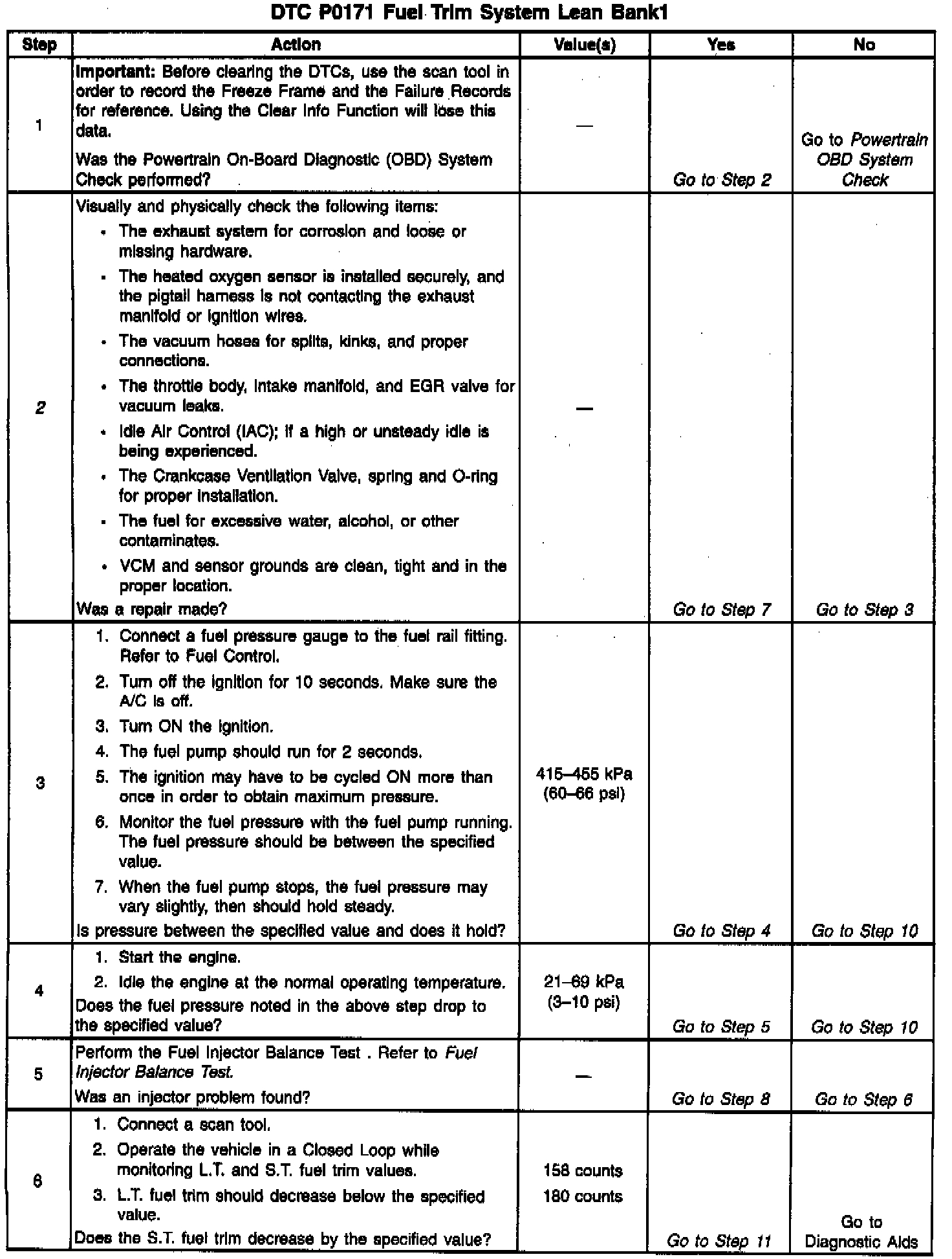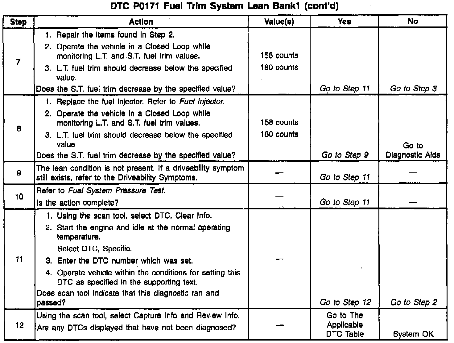If using the diagnostic tables does not isolate the problem, try monitoring the L. T. fuel trim and fuel trim cell while operating the vehicle under various loads. This may isolate the condition which caused the setting of this DTC.
