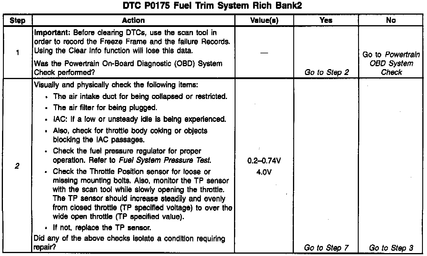 2. Visually and physically checking items which may cause a rich condition may determine the cause of the DTC P0175 being set.