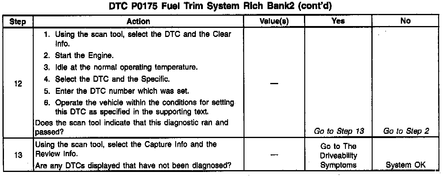 If using the diagnostic tables does not isolate the problem, try monitoring the L. T. fuel trim and fuel trim cell while operating the vehicle under various loads. This may isolate the condition which caused the setting of this DTC.
