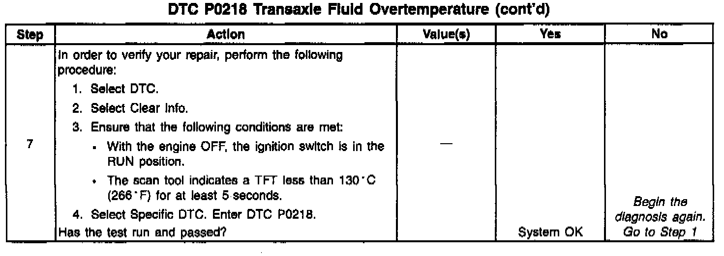 When the VCM detects a high transmission temperature for a long period of time, then DTC P0218 sets. DTC P0218 is a type D DTC.