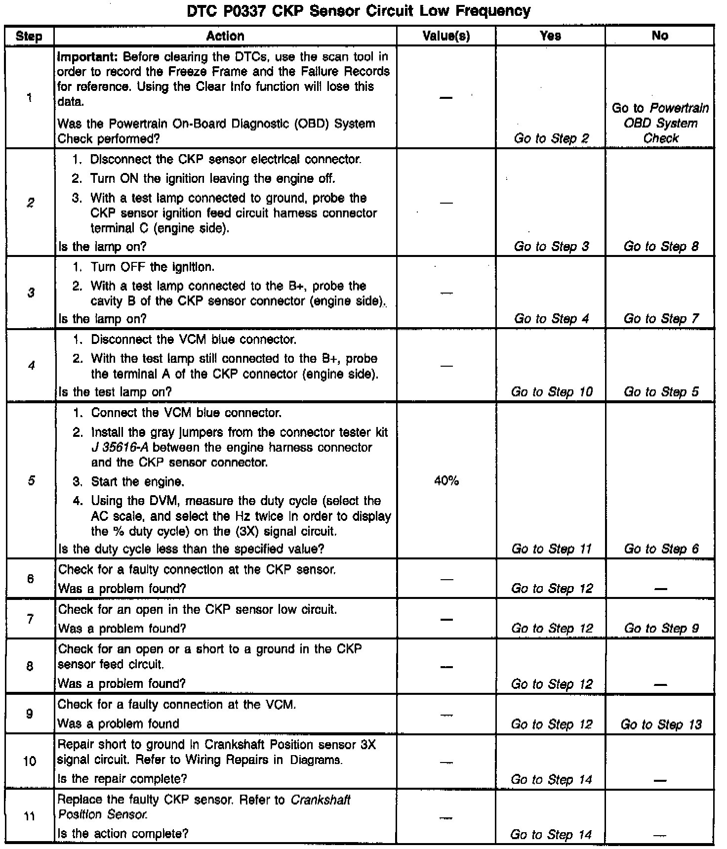 The Crankshaft Position (CKP) sensor sends a reference signal to the Vehicle Control Module (VCM) in order to indicate the crankshaft position and the RPM so that the VCM can determine when to pulse the ignition coil, the fuel injectors, and the control ignition timing. This is a type D DTC.