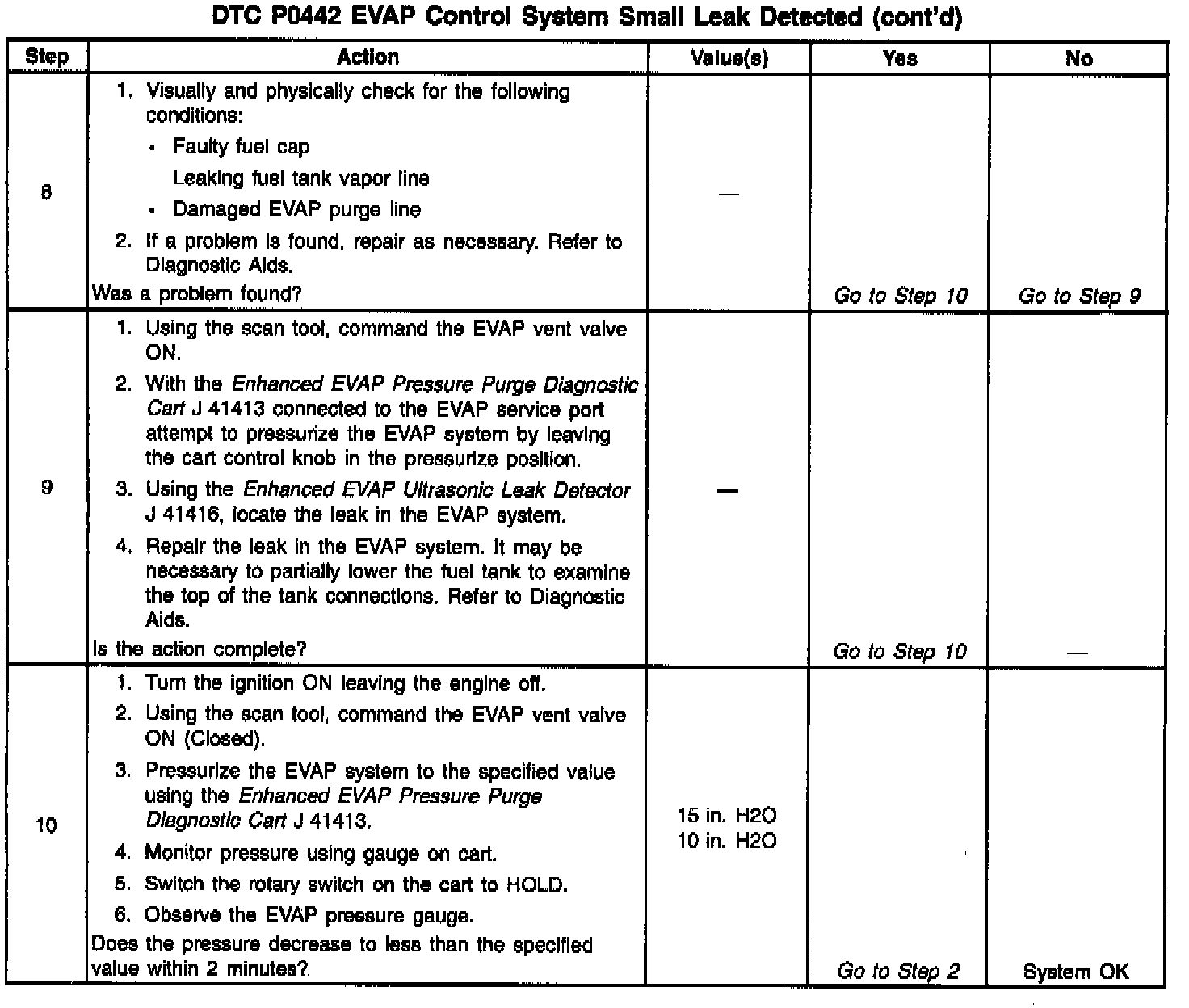 2. This step checks the fuel tank pressure sensor at ambient pressure. The fuel tank pressure sensor is zeroed at every key on to compensate for changes in atmospheric pressure.