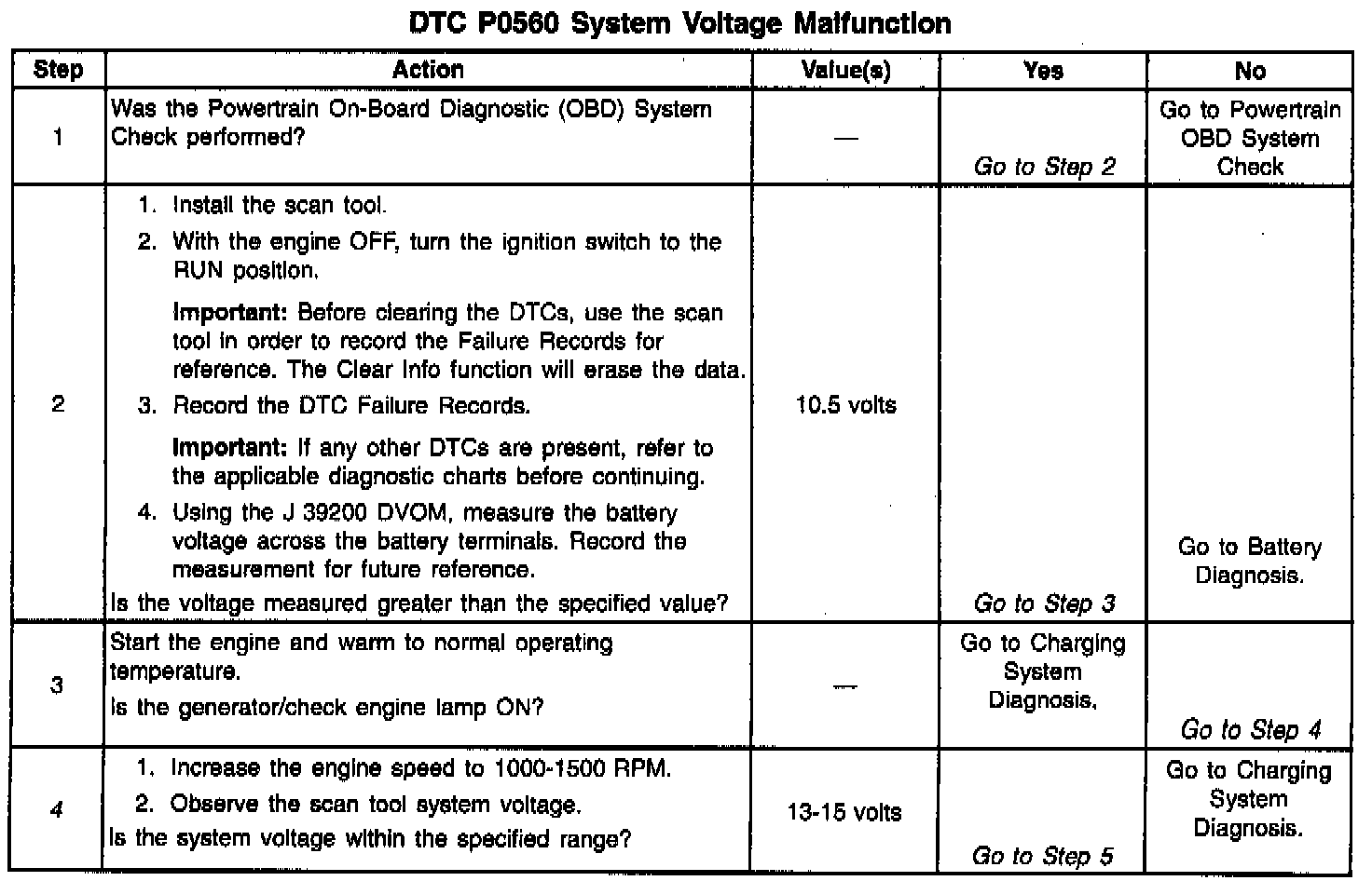 ^ Charging the battery with a battery charger may set DTCs. Jump starting an engine may set DTCs.