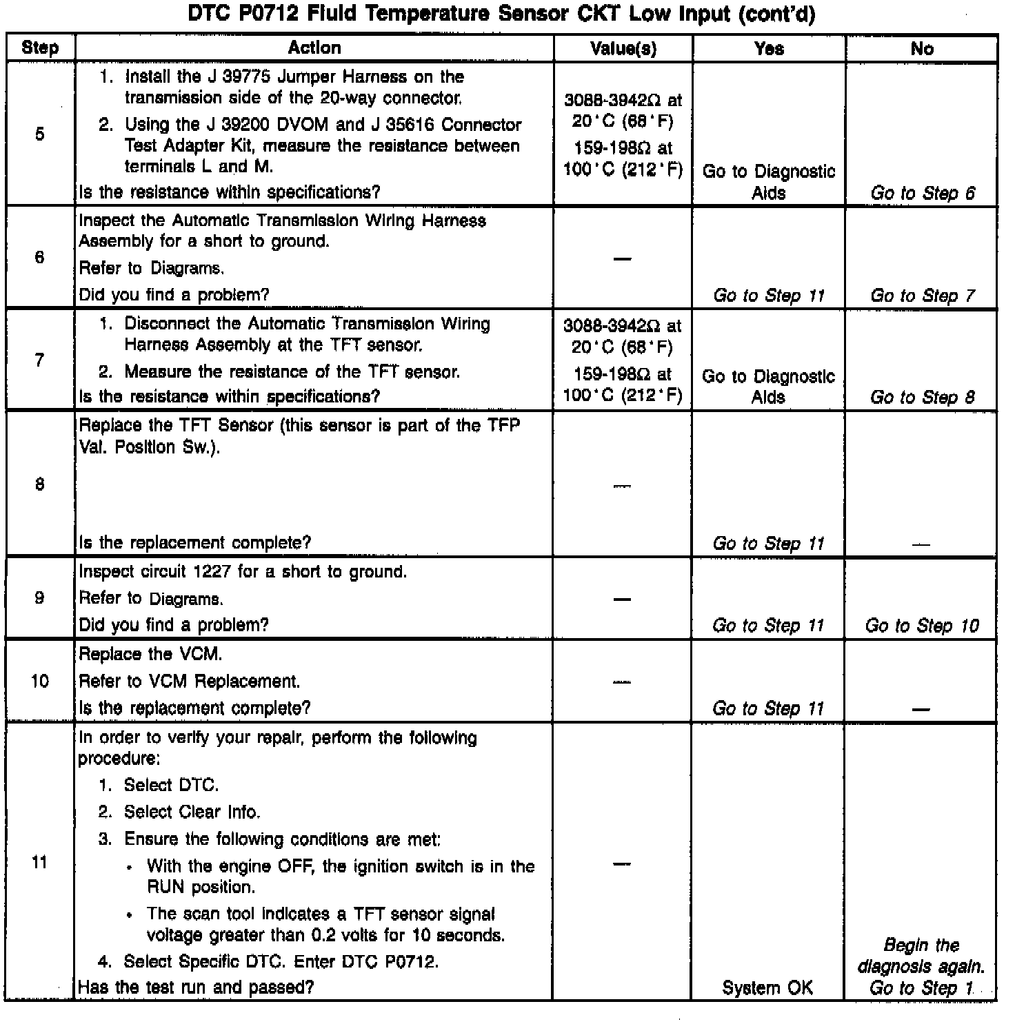 ^ Use the Temperature vs Resistance scale when testing the TFT sensor at various temperature levels. Test the TFT sensor in order to evaluate the possibility of a skewed (mis-scaled) sensor. A skewed sensor can result in delayed garage shifts or TCC complaints.