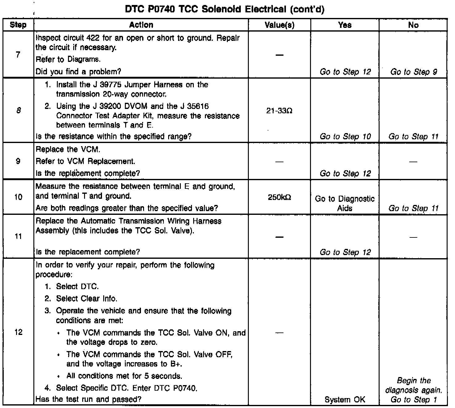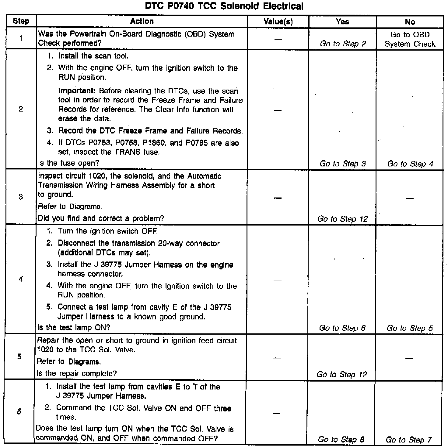 ^ A short to ground in the TCC Sol. Valve circuit may also set a TCC Stuck On DTC P0742.