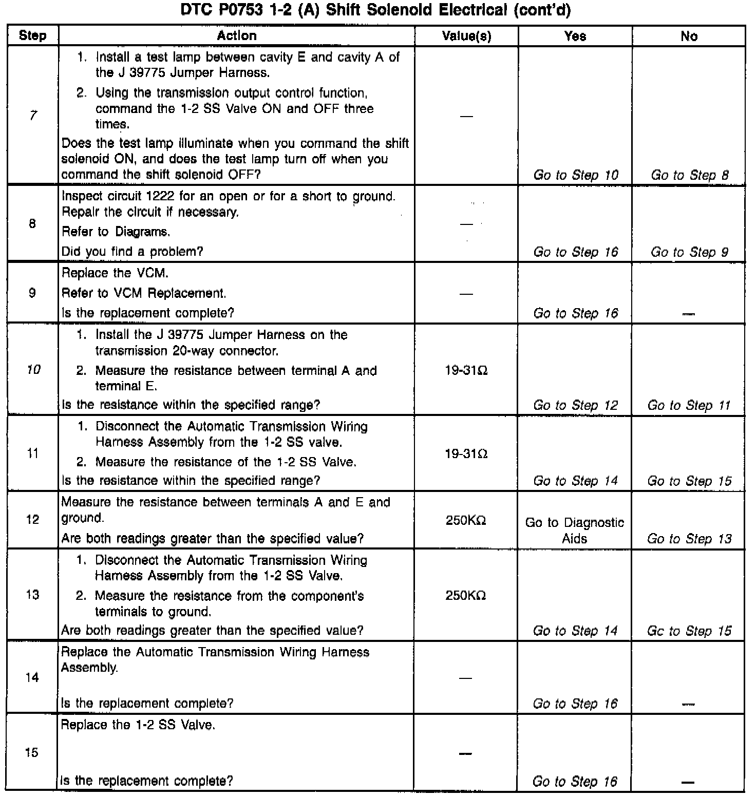 When the VCM detects a continuous open or short to ground in the 1-2 SS Valve circuit or the 1-2 SS Valve, then DTC P0753 sets. DTC P0753 is a type A DTC.
