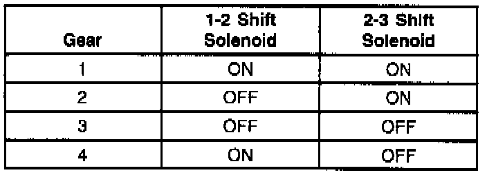The 1-2 Shift Solenoid Valve (1-2 SS Valve) controls the fluid flow acting on the 1-2 and 3-4 shift valves. The solenoid is a normally-open exhaust valve. With the 2-3 Shift Solenoid Valve (2-3 SS Valve), the 1-2 SS Valve allows four different shifting combinations. The solenoid attaches to the control valve body within the transmission. The 1-2 SS Valve receives ignition voltage through circuit 1020. The VCM controls the solenoid by providing the ground path on circuit 1222.
