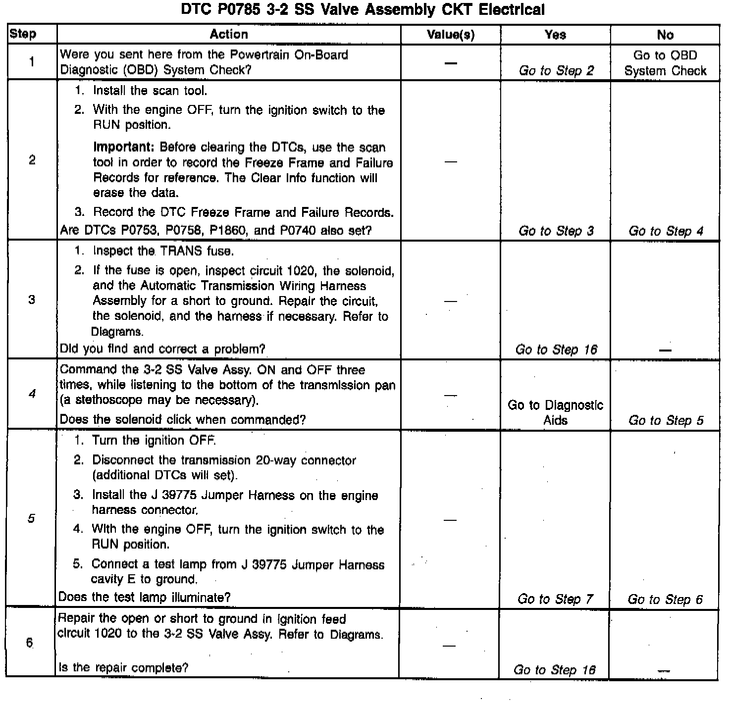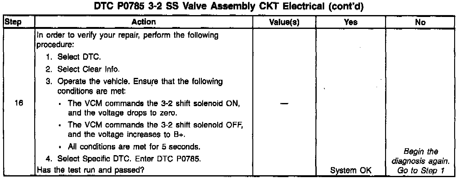When the VCM detects a continuous open or short to ground in the 3-2 SS Valve Assy. circuit or the 3-2 SS Valve Assy, then DTC P0785 sets. DTC P0785 is a type A DTC.