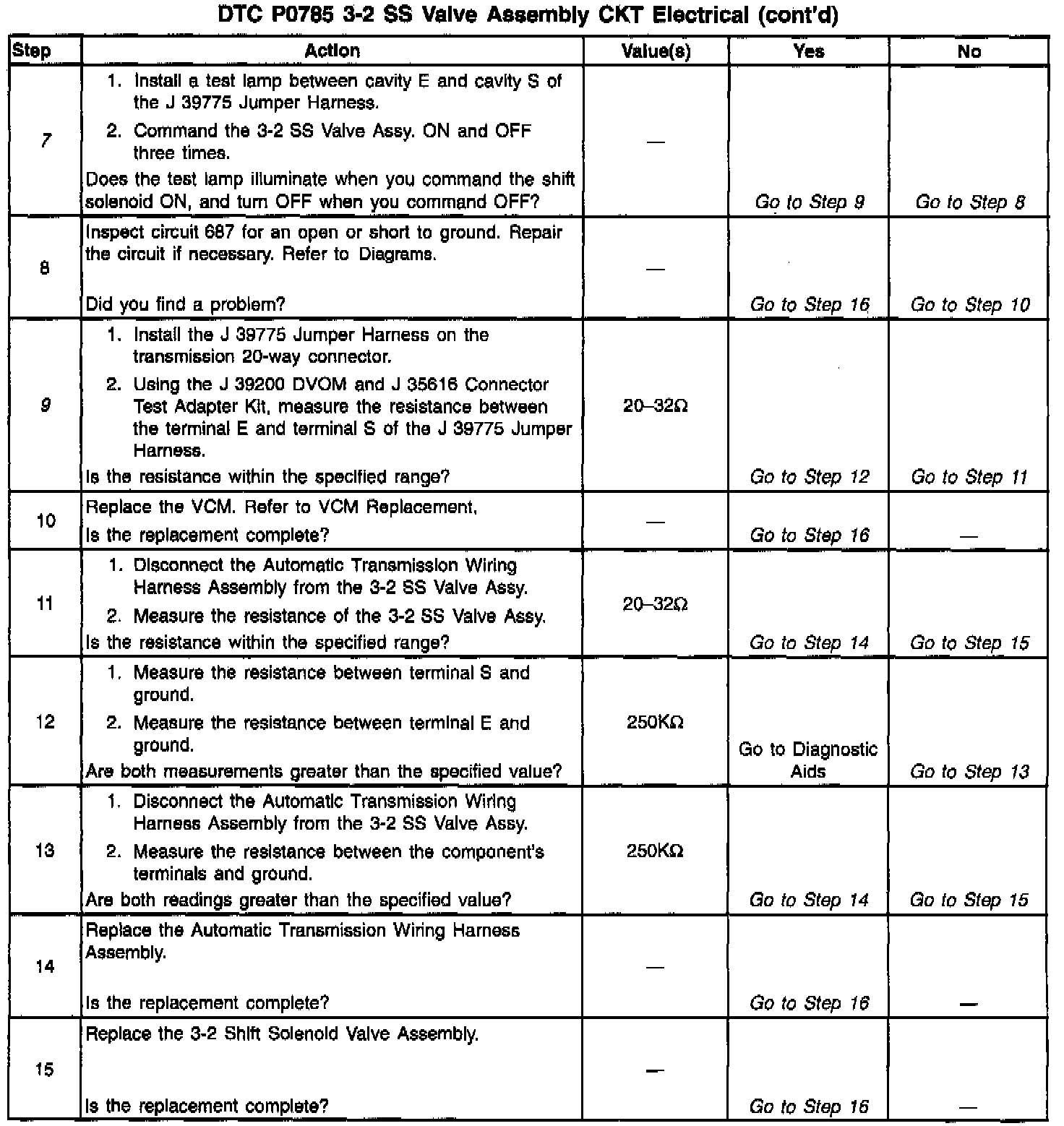 9. This step measures the resistance of the Automatic Transmission Wiring Harness Assembly, and the 3-2 SS Valve Assy.