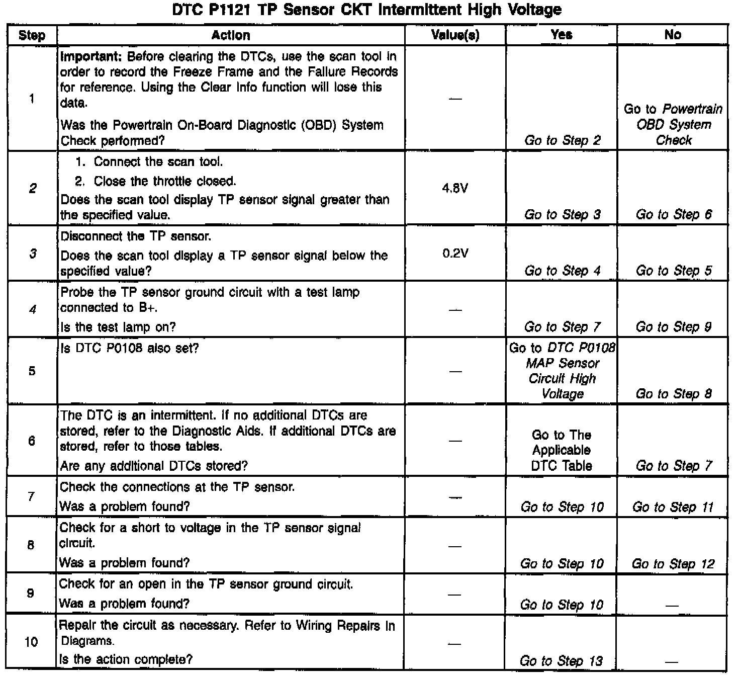 A DTC P0123 will result if the TP ground circuit is open or the TP signal circuit is shorted to the voltage.