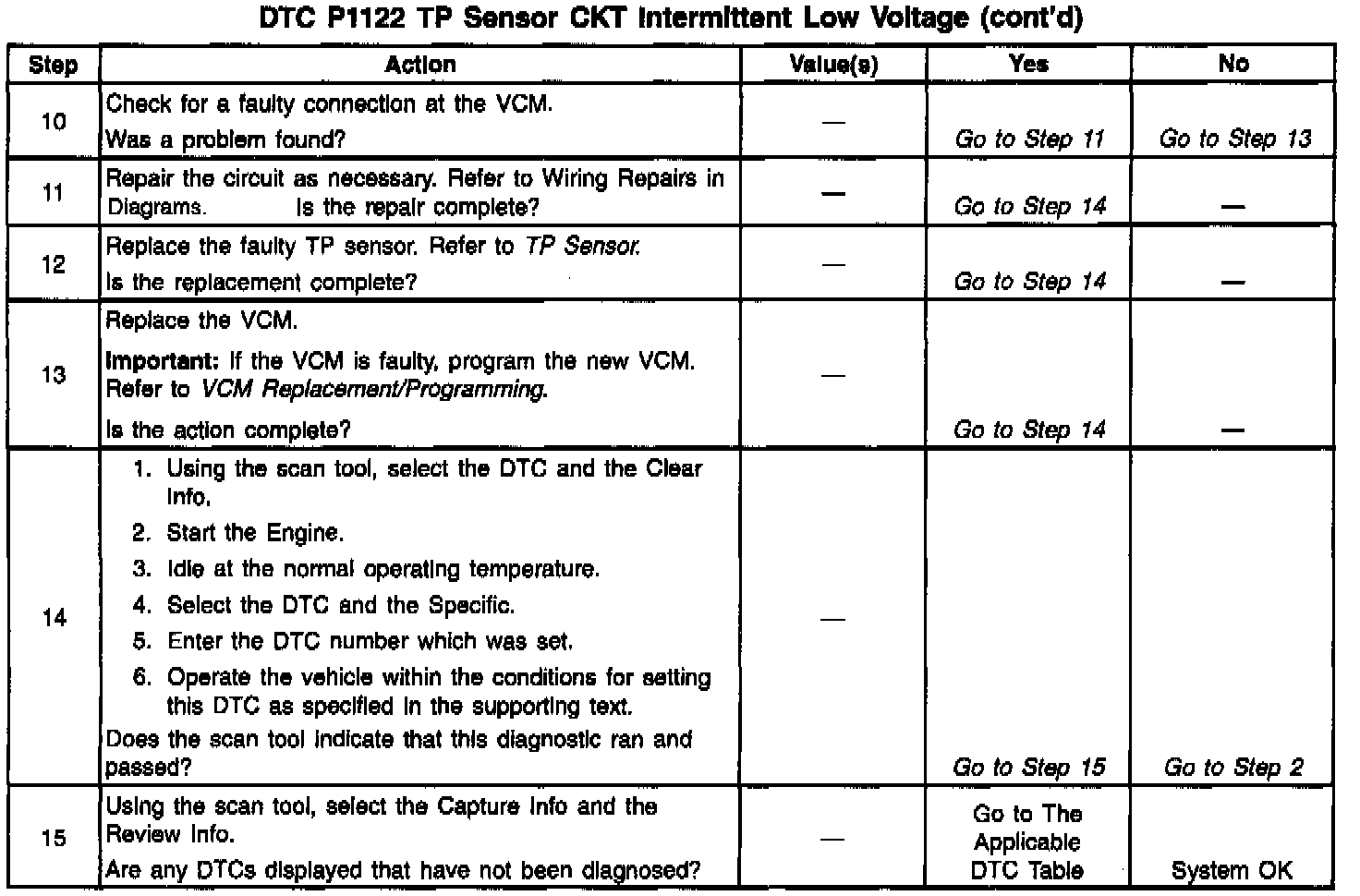Each time the voltage drops below 1.25 volts and stops, the VCM assumes this value as the 0 throttle angle, and the VCM measures the percent throttle from this point on. The DTC P0123 is a type A DTC. The DTC P1122 is a type D DTC.