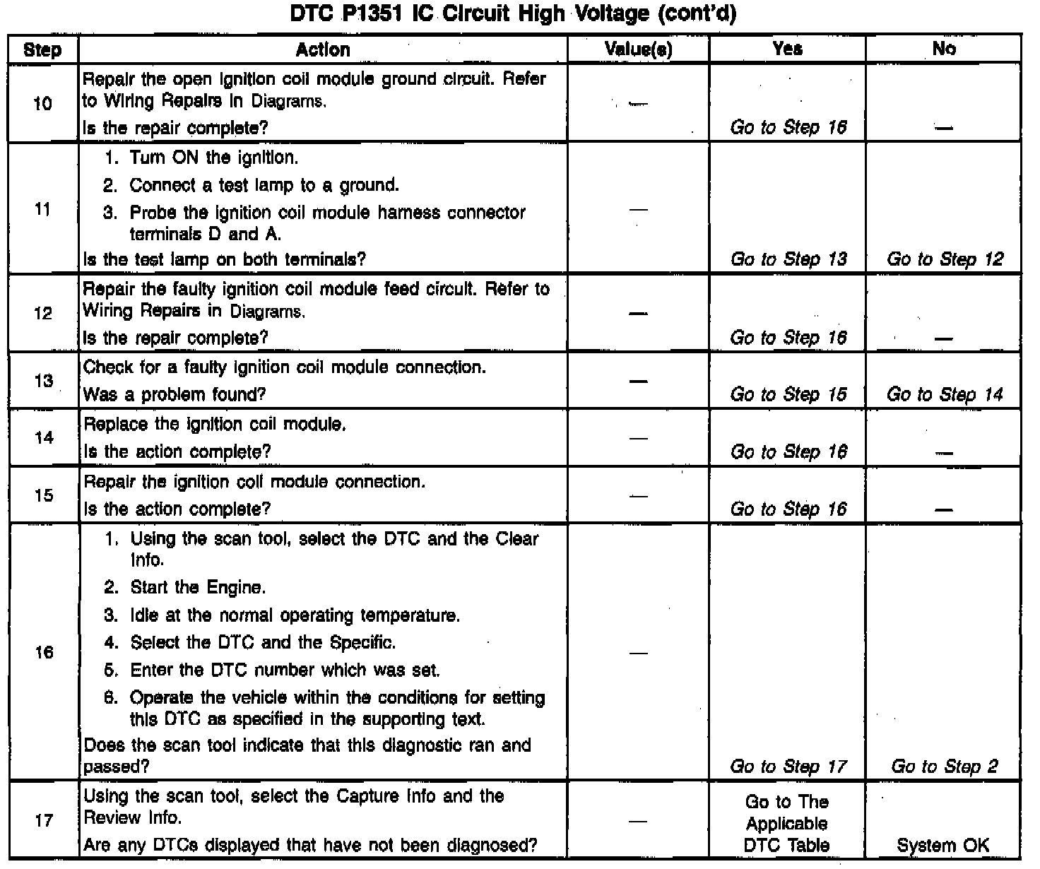 The numbers below refer to the step numbers in the diagnostic table.