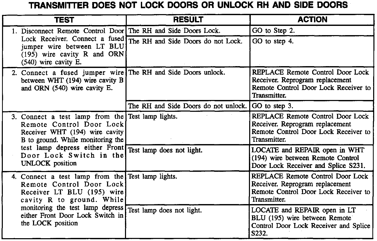 Transmitter Does Not Lock Doors or Unlock RH and Side Doors