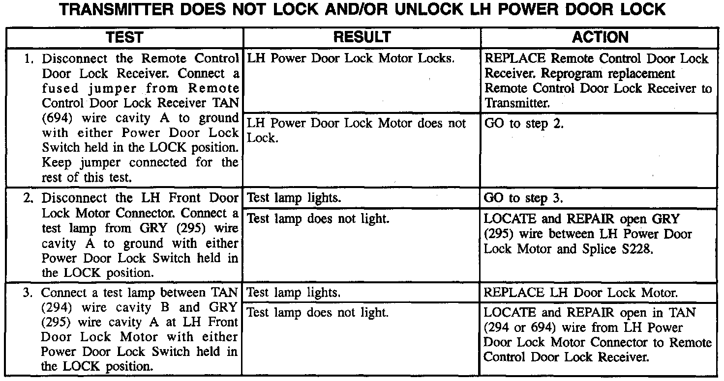 Transmitter Does Not Lock And/Or Unlock LH Power Door Lock:
