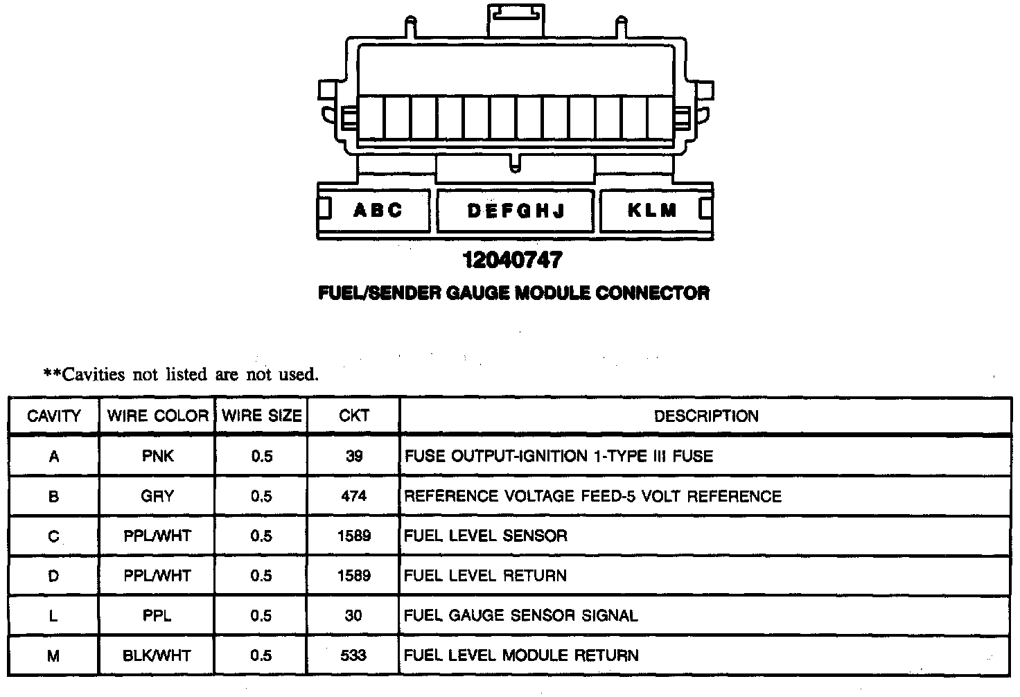 Fuel/Sender Gauge Module Connector: