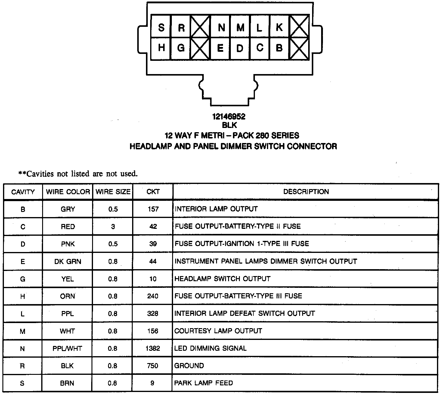 Headlamp And Panel Dimmer Switch Connector: