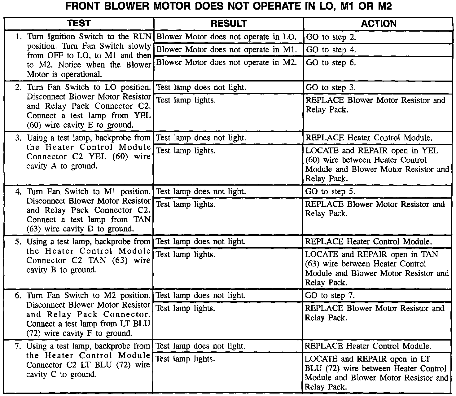 Front Blower Motor Does Not Operate In LO, M1 Or M2: