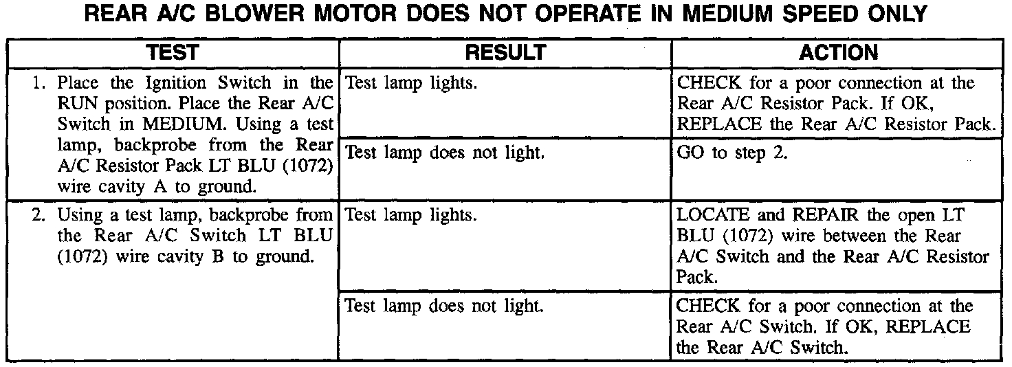Rear A/C Blower Motor Does Not Operate In Medium Speed Only: