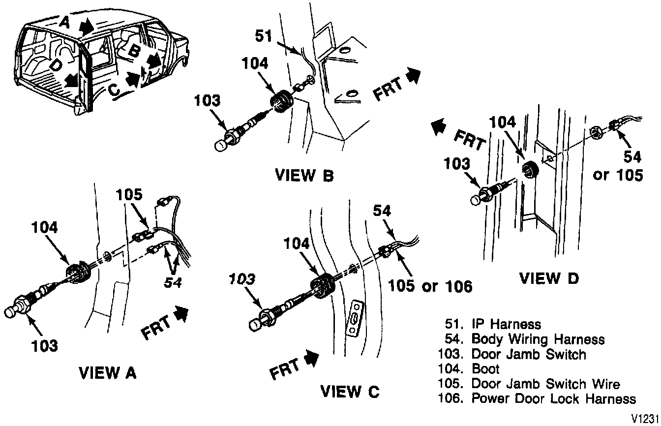 ^ Tape the wiring to the body to prevent it from entering the hole in the door pillar.