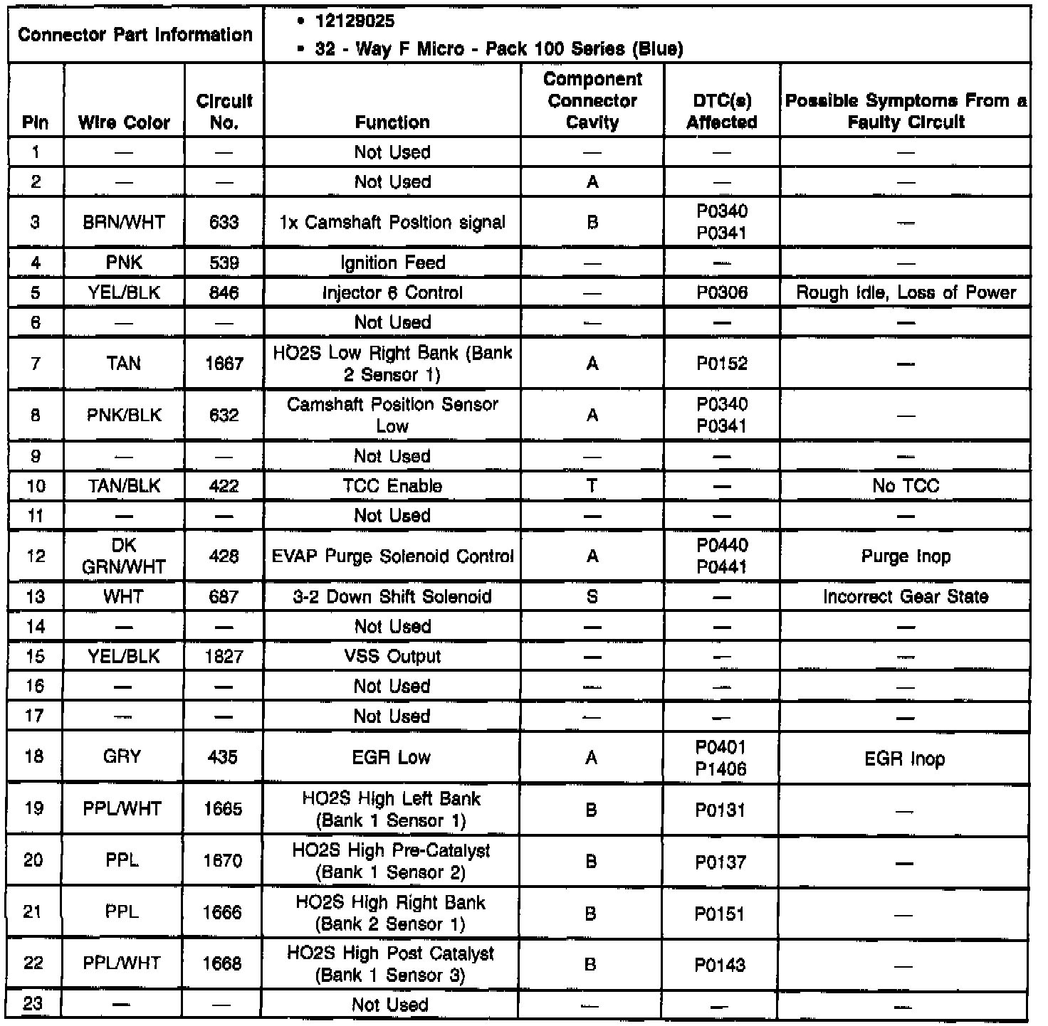 Pinout Values and Diagnostic Parameters