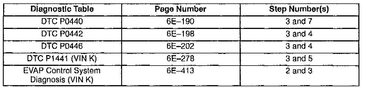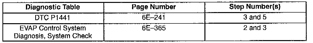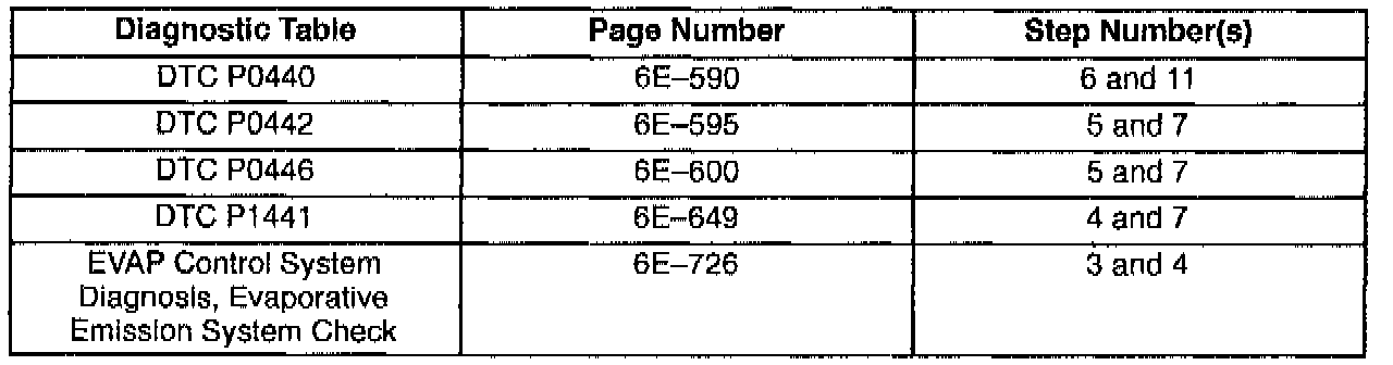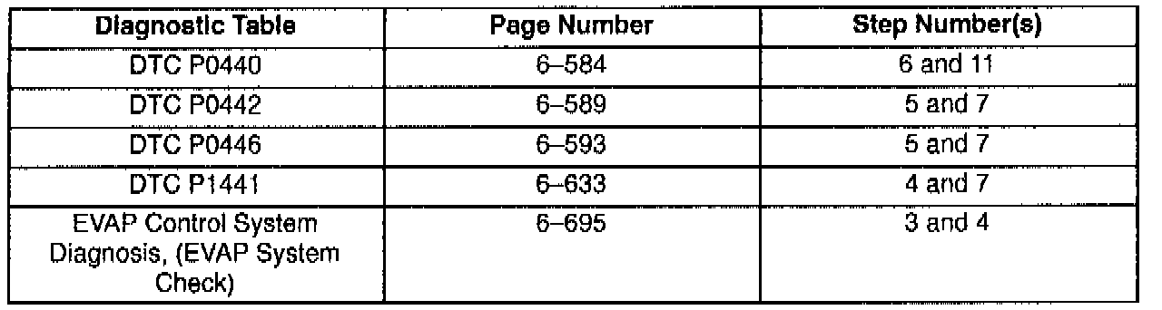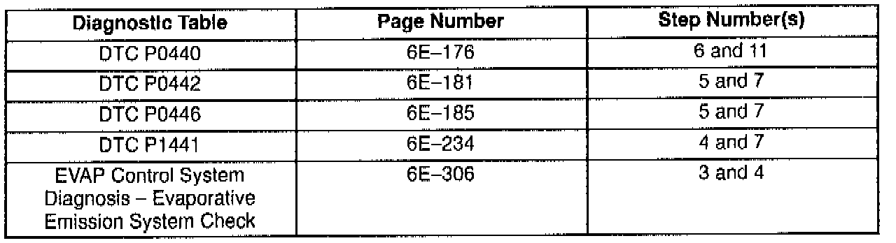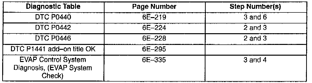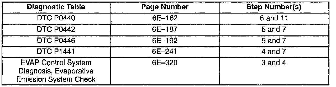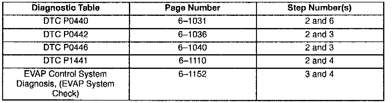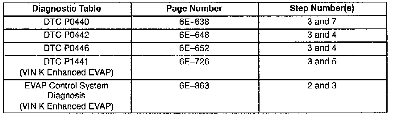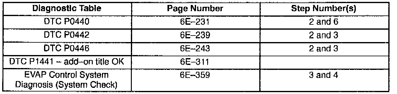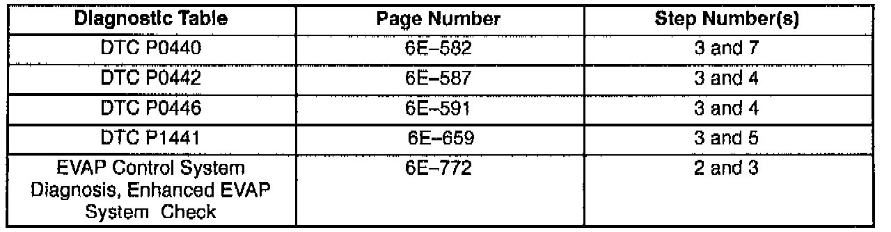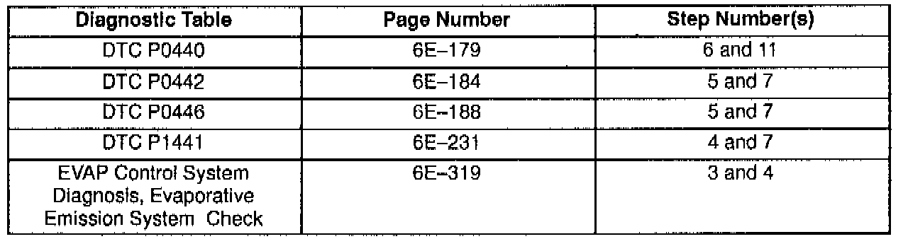 This bulletin is being issued to revise the reference to the EVAP Control System Diagnosis that appears in the following diagnostic tables: