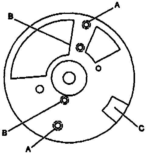 ^ The square cut hole (C) in the vane wheel must be aligned with the hall effect switch in order to remove the hall effect switch.