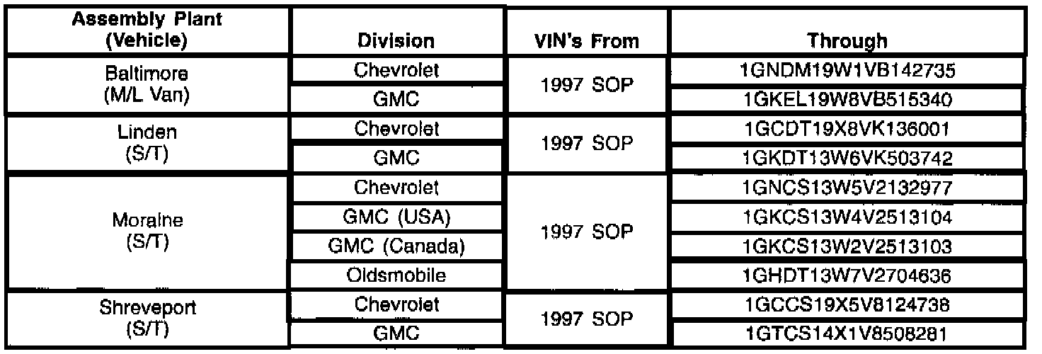 This production change occurred during 1997 vehicle production in mid-October, 1996. The following VIN breakpoints have been established: