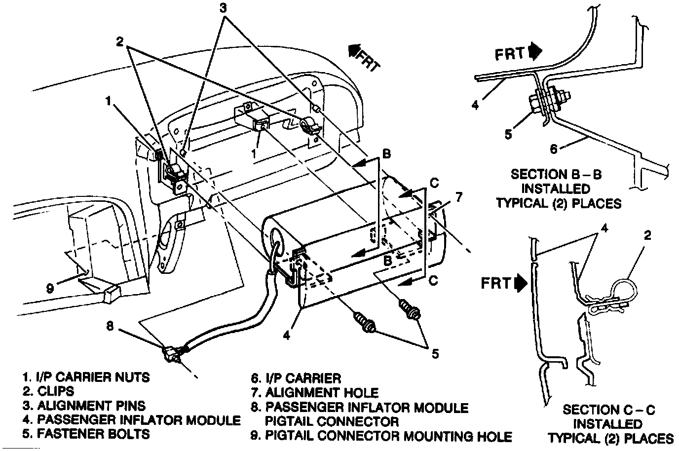 4. lip retaining inflator pigtail to the I/P.