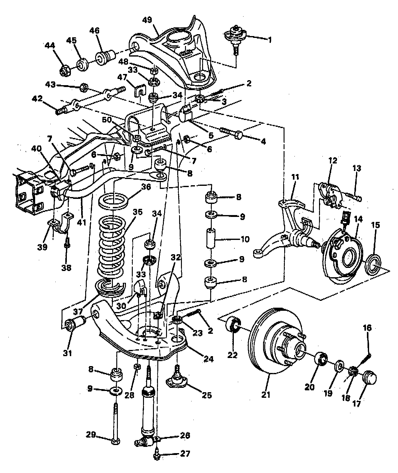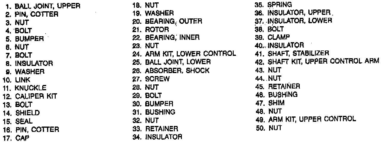 NOTE: The proper functioning of the front suspension cannot be maintained unless the front wheel bearings are correctly adjusted. The cones must be a slip fit on the spindle and the inside diameter of the cones must be lubricated to ensure the cones will creep. The spindle nut must have a free-running fit on the spindle threads.