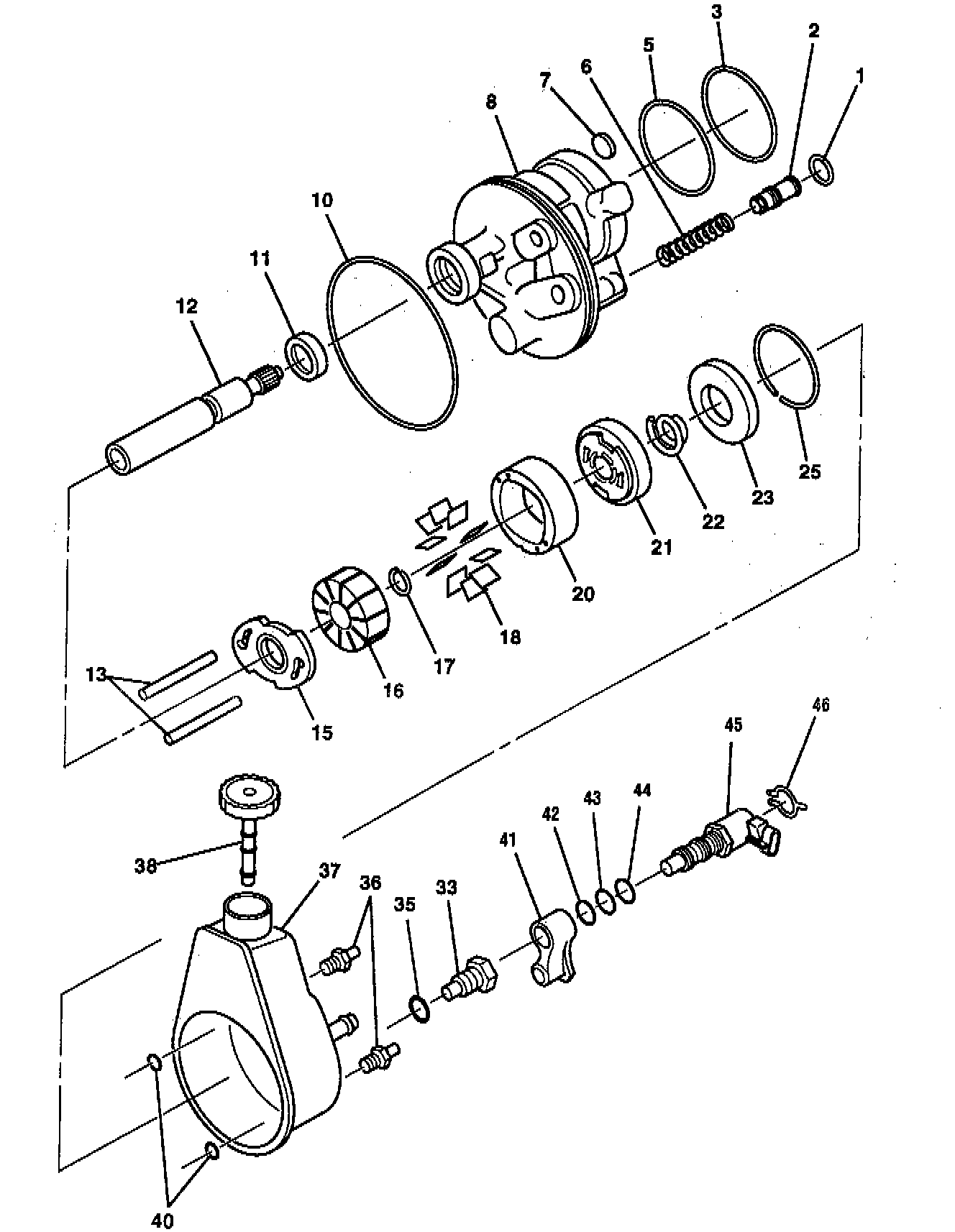1. O-Ring seals (18, 20 and 21) on Variable Assist Steering actuator (22).