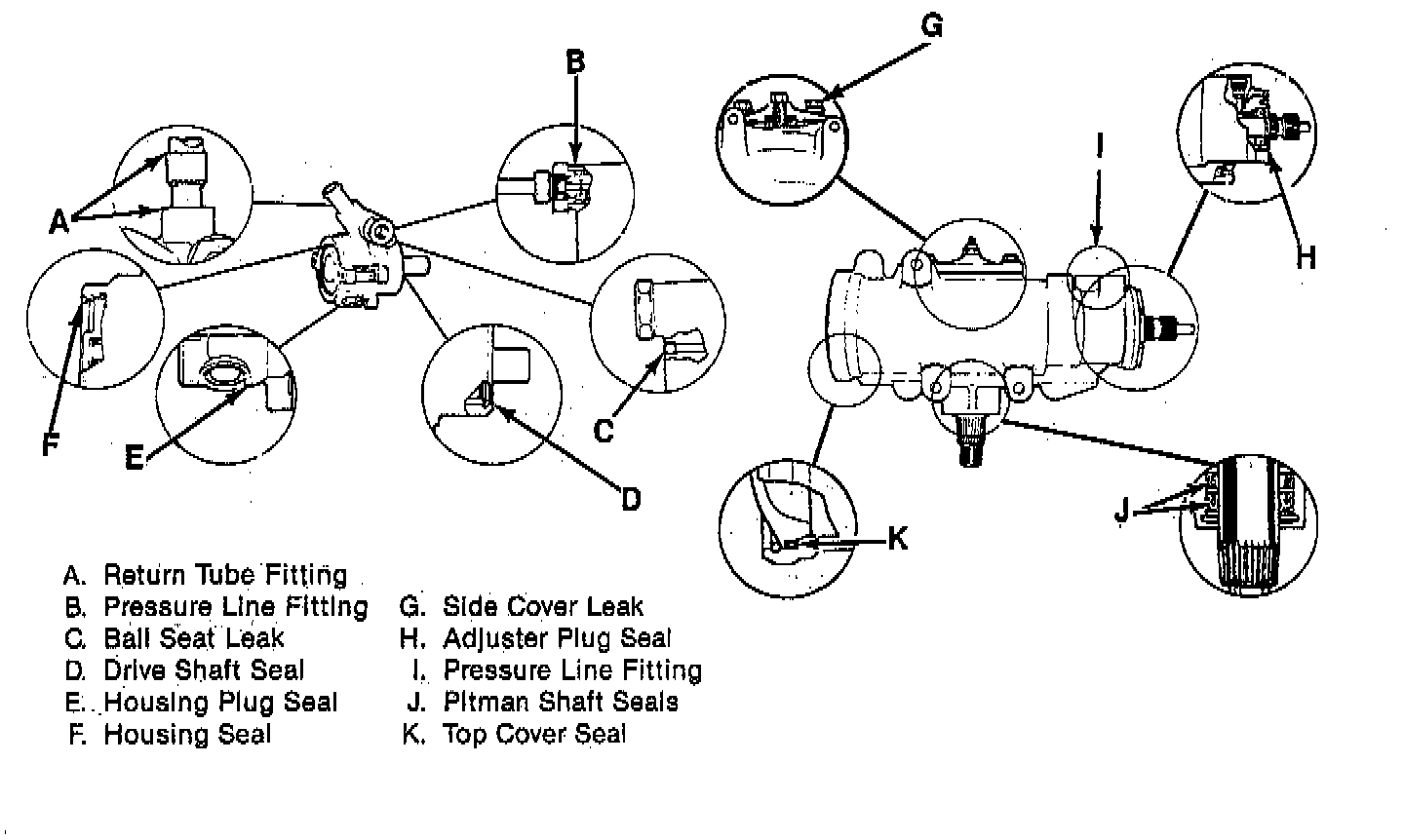 b. Pressure Line Fitting-Torque the fitting to 27 Nm (20 ft. lbs.). If leakage persists, replace the seal.