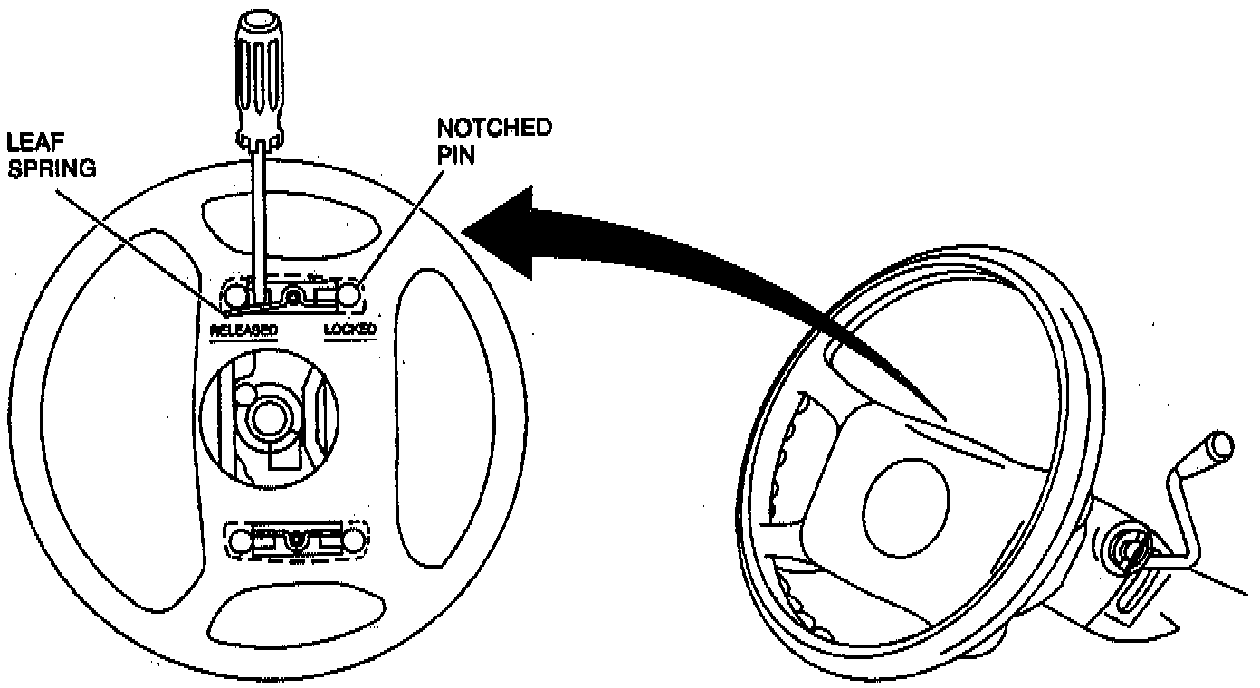 WARNING: When carrying a live inflator module, make sure the bag opening is pointed away from you. In case of accidental deployment, the bag will then deploy with a minimal chance of personal injury. Never carry the inflator module by the wires or connectors on the underside of the module. When placing a live inflator module on a bench or other surface, always face the bag and trim cover up, away from the surface. This is necessary so that a free space is provided to allow the air bag to expand in the unlikely event of accidental deployment. Never rest a steering column assembly on the steering wheel with the inflator module face down and the column vertical. Otherwise, personal injury may result.