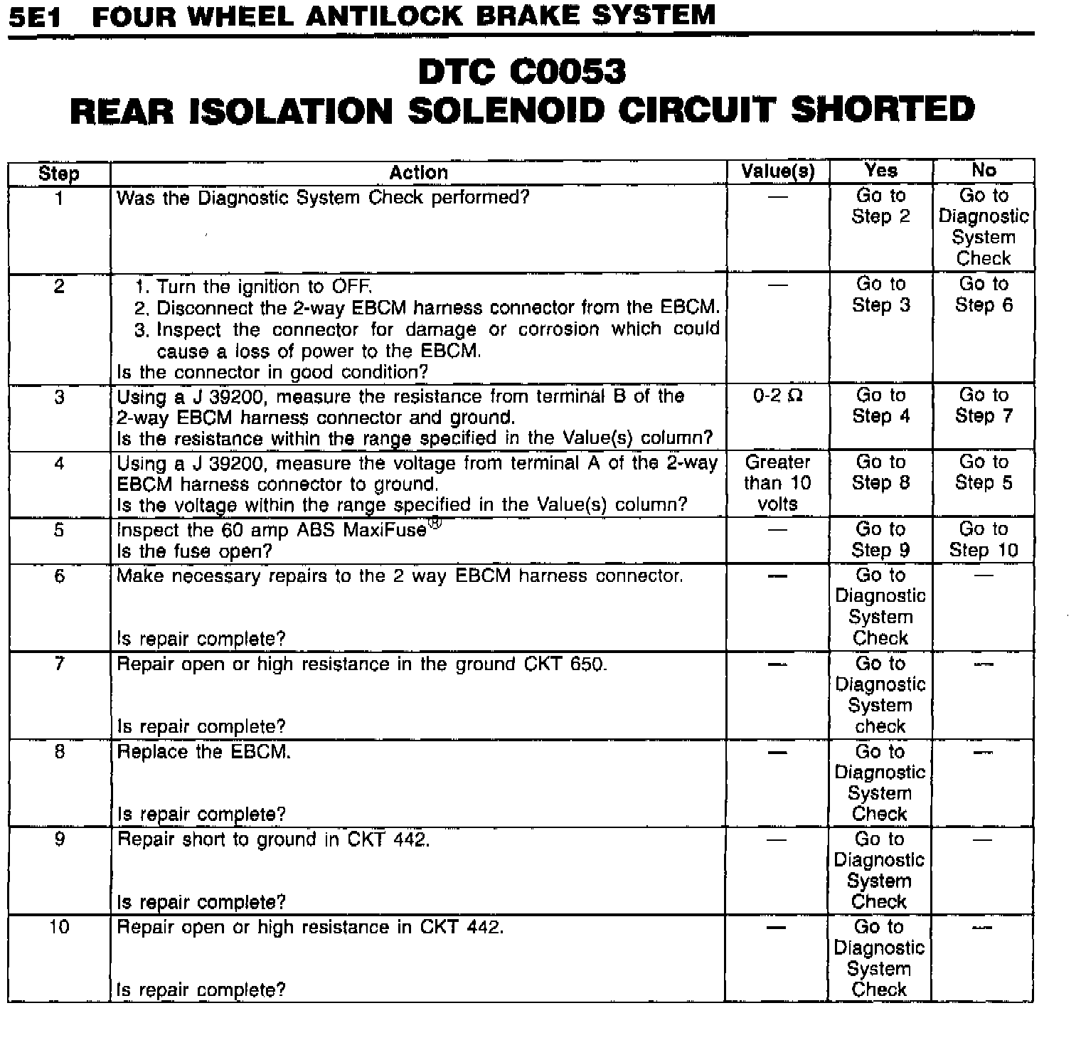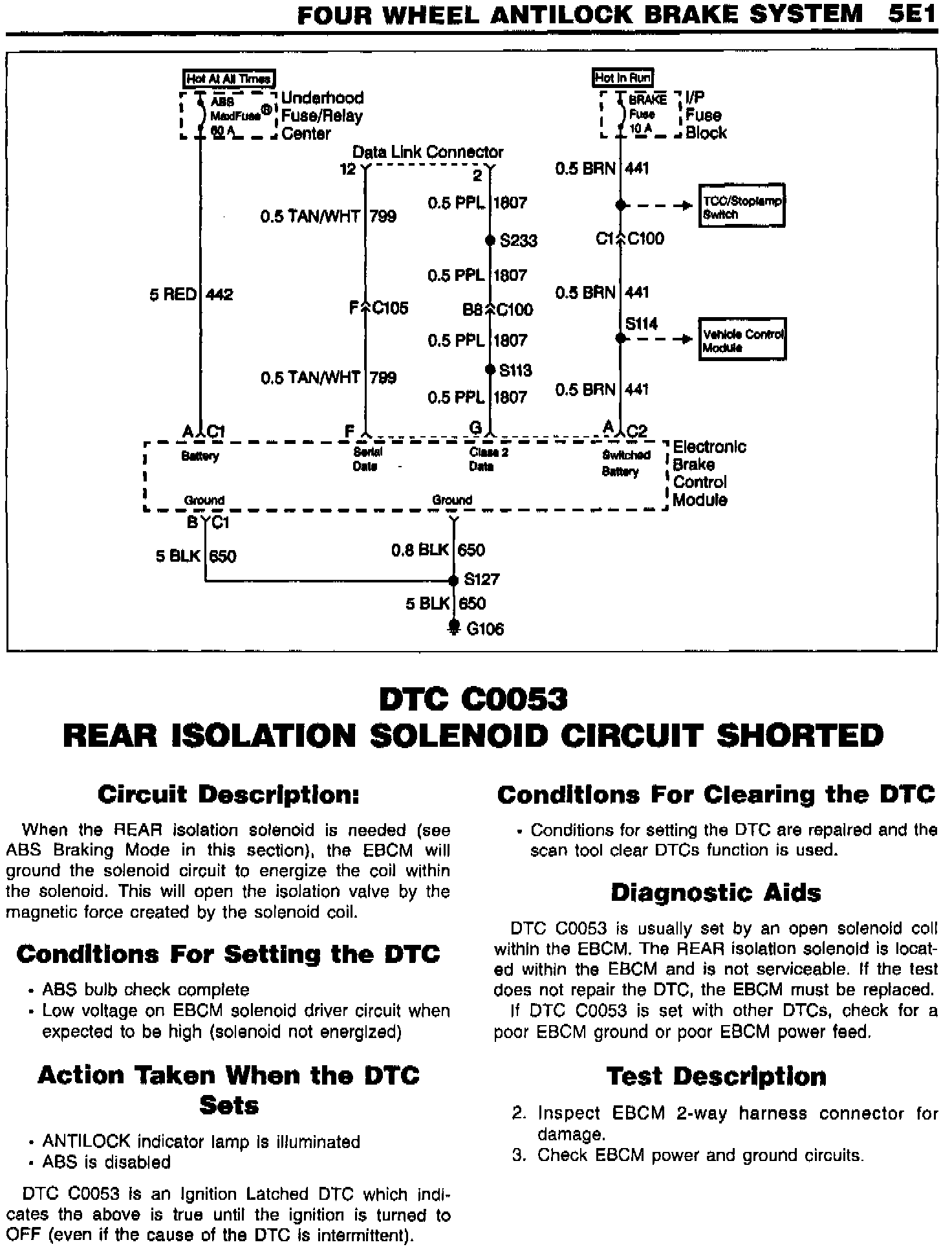 ABS, DTC C0053 (Rear Isolation Solenoid Circuit Shorted)