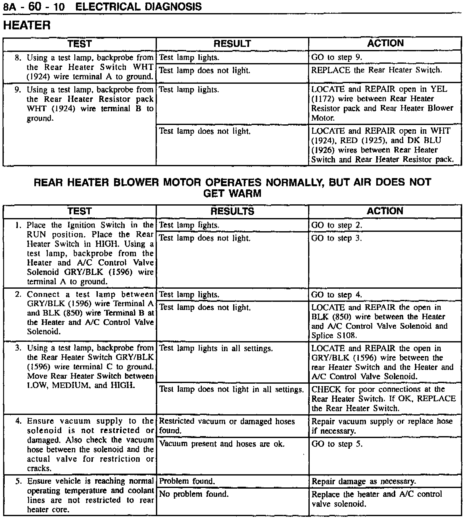 Section 8A-6O - Heater - Revised Diagnostic Table