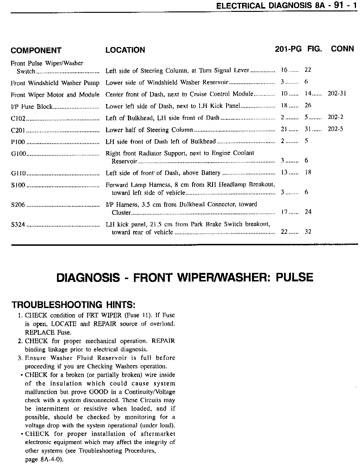This bulletin revises the schematic on Page 8A-91-0, the Component Location Table on Page 8A-91-1, the diagnostic tables on Pages 8A-91-2 and 3, and the Component Location View on Page 8A-201-22 in the 1997 MIL Service Manual.