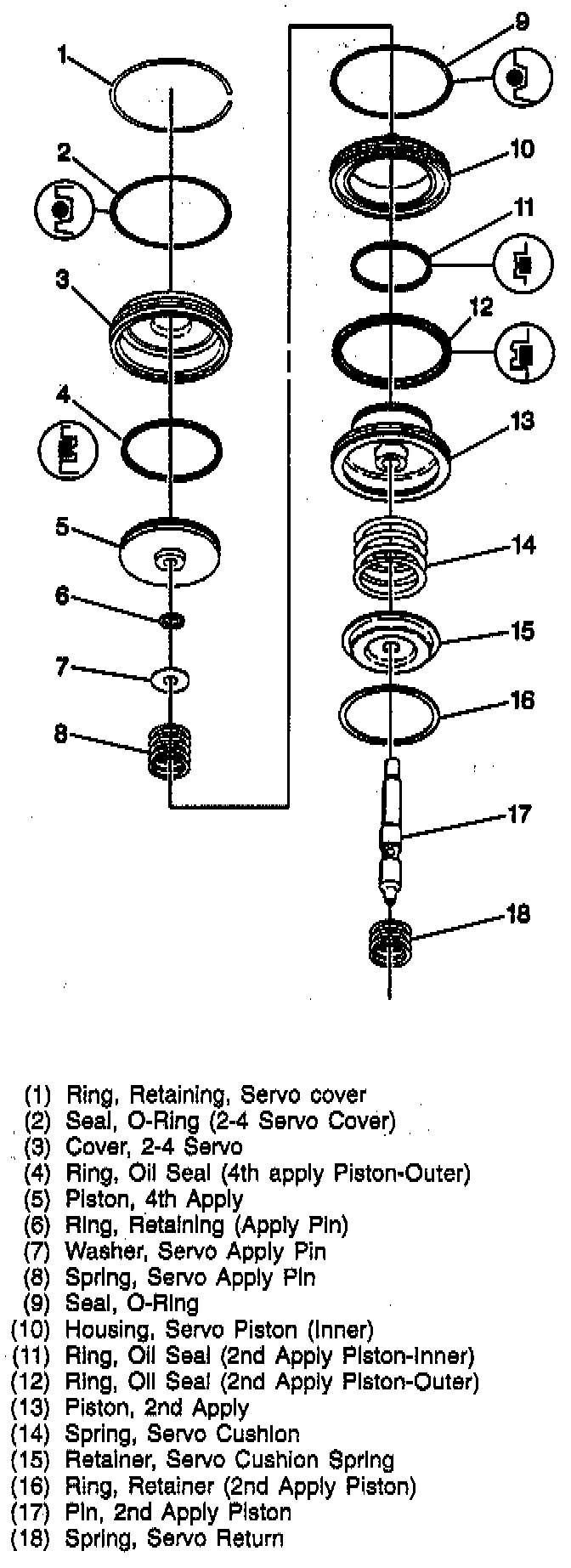 5. Servo pin retainer ring, washer, and apply pin spring.