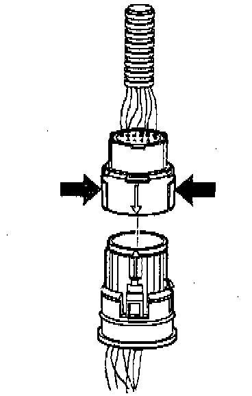 - In order to reinstall the external wiring connector, first orient the pins by lining up the arrows on each half of the connector. Push the connector straight down into the transmission without twisting or angling the mating parts.