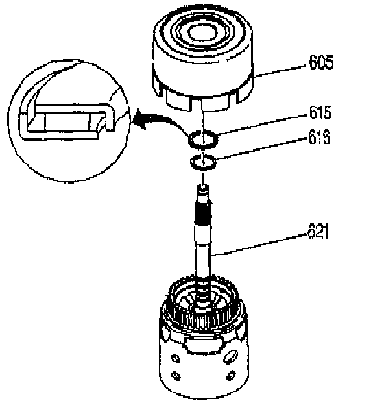 9. The selective washer which controls the end play is located between the input housing and the thrust bearing on the oil pump hub. If the dial indicator sows no end play, the selective washer and thrust bearing may have been misassembled.
