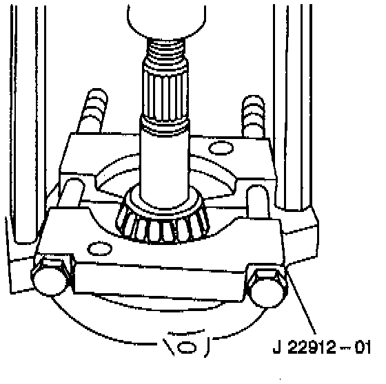 21. Inner bearing cup by pushing it out using J 33837-1, J 33837-3 and J 33837-6.