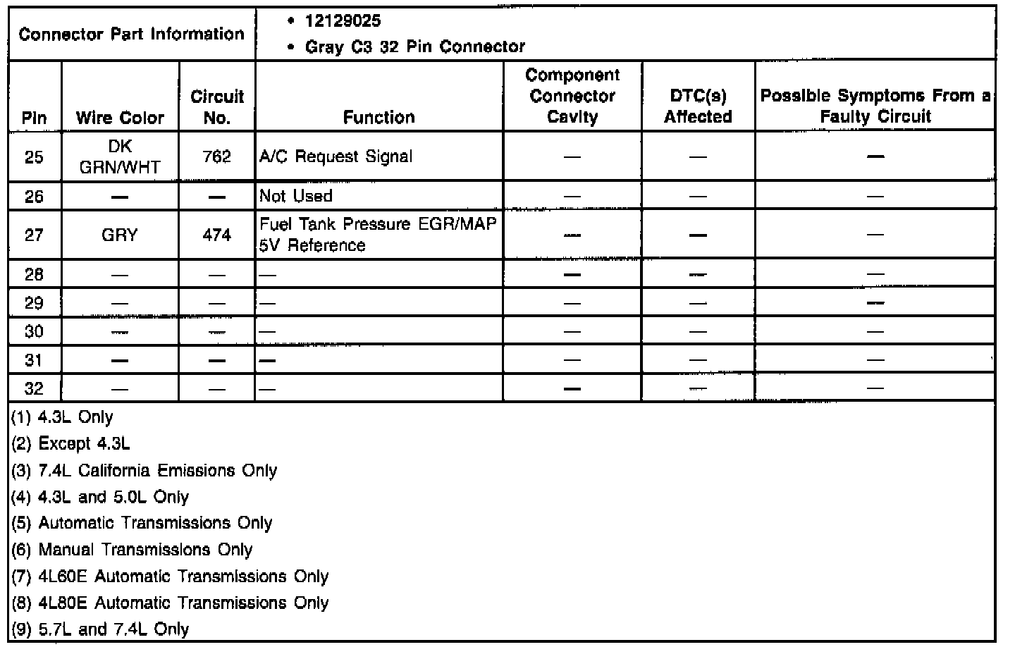 C 1500 Truck 2WD V6-4.3L VIN W