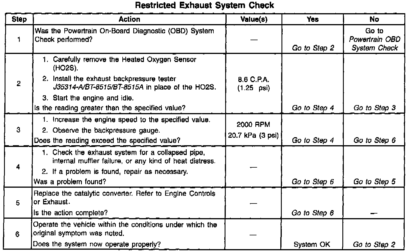 System Check - Restricted Exhaust
