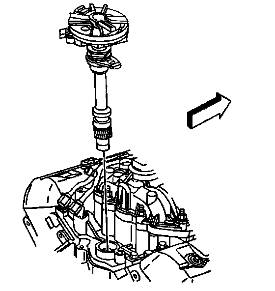 8. Install the distributor and distributor clamp. The flat in the distributor housing must point toward the front of the engine.