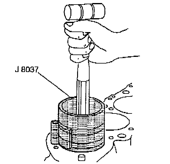 10. Use a hammer handle to lightly tap the piston down into the cylinder bore.