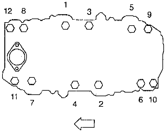 2) In the second pass, tighten all bolts in sequence to 14 Nm (10 ft. lbs.).
